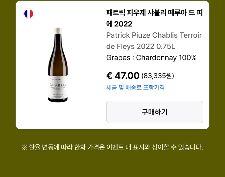 패트릭 피우제 샤블리 프리미에 크뤼 스셰 2022 (택배배송)